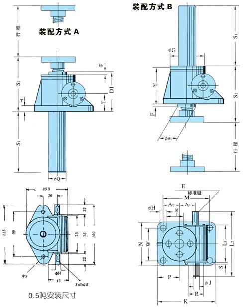 四種型式;2.型結(jié)構(gòu)型式的絲桿頭部分為Ⅰ型(圓柱型)、Ⅲ型(螺紋型)二種型式。